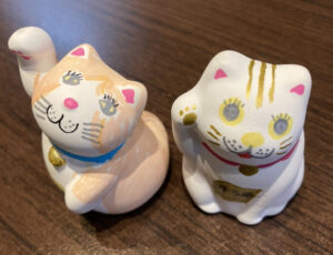 谷中銀座にて招き猫の絵付けにチャレンジしてきました! ほりでんの・・・ すべての人に幸あれ✨という願いを込めて作りました。